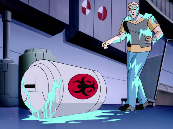 On the night of the heist, Charlie snuck into the Cerestone lab at Wayne-Powers Research and opened the east loading bay for Karros. Batman soon interrupted the robbery and a battle ensued. During the mêlée, a canister of Cerestone leaked and Charlie was bathed with the chemical. Though they eluded capture, Karros blamed Charlie for the fiasco, and demanded a reimbursement of 40,000 credits. As if that wasn't bad enough, Charlie started to feel the effects of the Cerestone, as he was engulfed with pain and saw his body gradually changing.