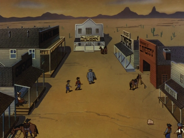 The manufacture of Ra's al Ghul's Phoenix was located a short ride's distance outside Devil's Hole. Jonah Hex requested information about Arkady Duvall at the local saloon.