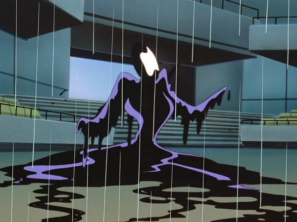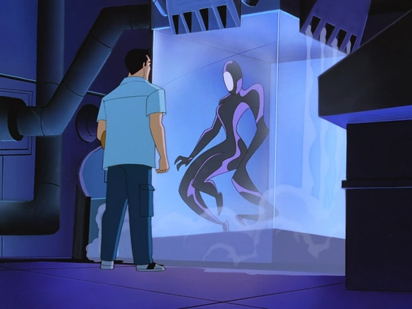 "Disappearing Inque" is the eleventh episode of Batman Beyond. It depicts the return of Inque. After being turned down for a raise and fired by his boss at the cryogenics lab, Aaron Herbst becomes disgruntled and releases Inque from her icy prison. Having had to listen to him for months, Inque decides that he'll make a suitable partner for the time being and uses him to get the mutagenic chemicals she needs to heal herself and assume her human form again. After being healed, Inque captures Batman and tries to lure Bruce into her trap too. Now Inque has both Batmen to deal with.