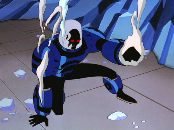 - Mr. Freeze's appearance in Batman Beyond was originally supposed to be a cameo. When Bruce Wayne told Terry McGinnis to go to the fridge to get him a drink, he did so and found Freeze's head staring right back at him when he opened the fridge.[9] However, the producers felt that the character deserved a proper sendoff which resulted in the episode "Meltdown".