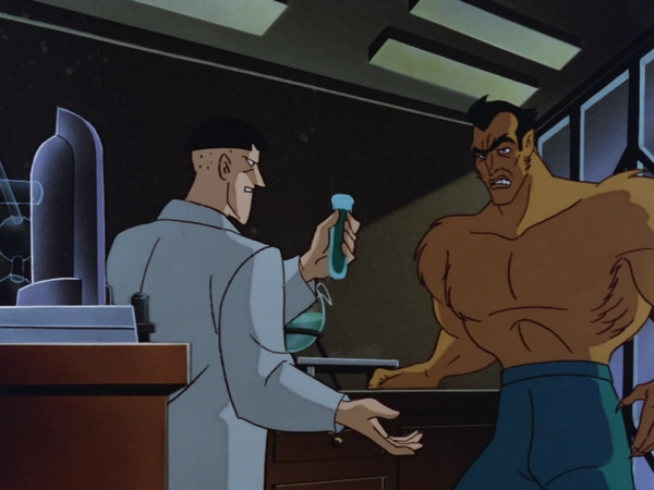 While the two men wait for Batman to awaken, Romulus ponders on the unpleasant task of killing him and confronts Milo over the evil he's made him do. However, Milo reminds him that he's the only one with the cure for Romulus' condition. It flashes back to scenes of Anthony devoting himself to training, but that did not give him the confidence that he would get the gold medal. Wanting a guaranteed win, as well as something that would not cause him to fail the test for steroids, he went to Milo for an undetectable performance enhancer. Milo showed him a serum derived from steroids and wolf estrogen. Romulus immediately snatched the vial and gulped the serum down. It proved to be a success and Romulus won at every event he competed in. With the fame, he amassed a fortune, but he turned back on Milo's deal and refused to share the profits. This proved to be a mistake as the serum infected him with lycanthropy, albeit at a moderate stage as he had some wolf traits, but without the bestial behavior. Romulus went to Milo to seek out help, who warned that the condition is irreversible. Milo said advanced lycanthropy is curable, as gave Romulus a second dose of the performance enhancer.