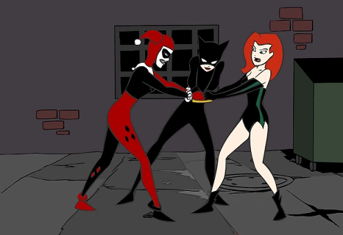 Harley Quinn, Catwoman and Poison Ivy begins to rock-paper-scissors.