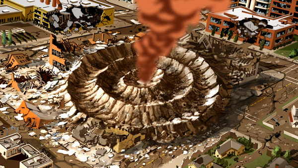 Cadmus HQ destroyed by the Watchtower's binary fusion cannon.