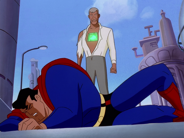Superman weakened by Metallo's Kryptonite power core.